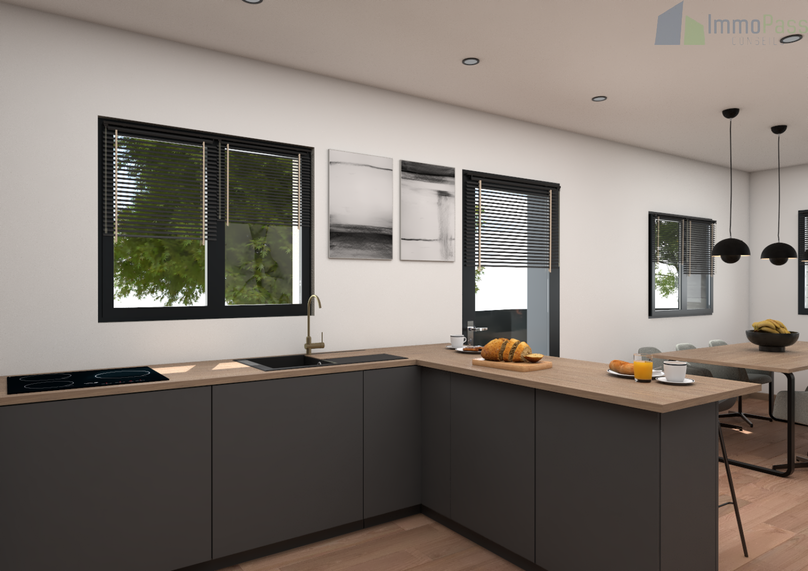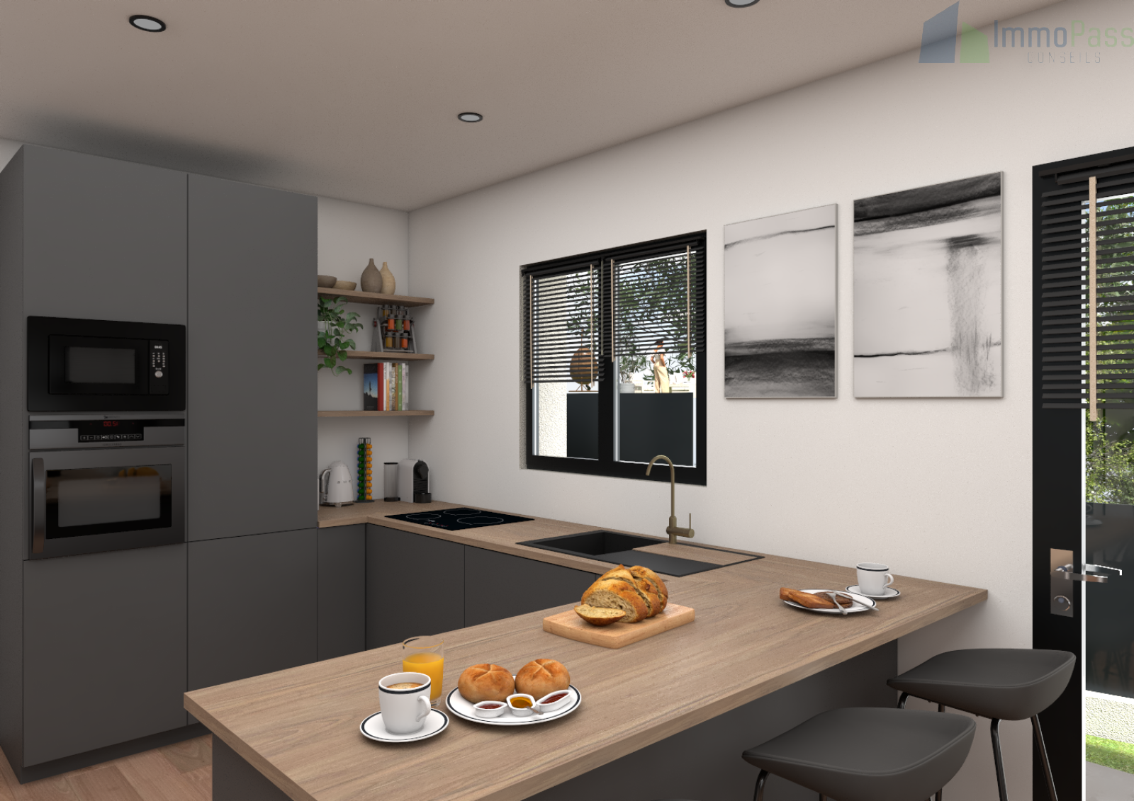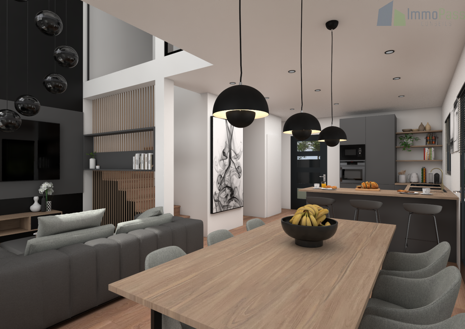 Une conception moderne et élégante avec des materiaux de qualités, mettant en avant des espaces bien pensés.
