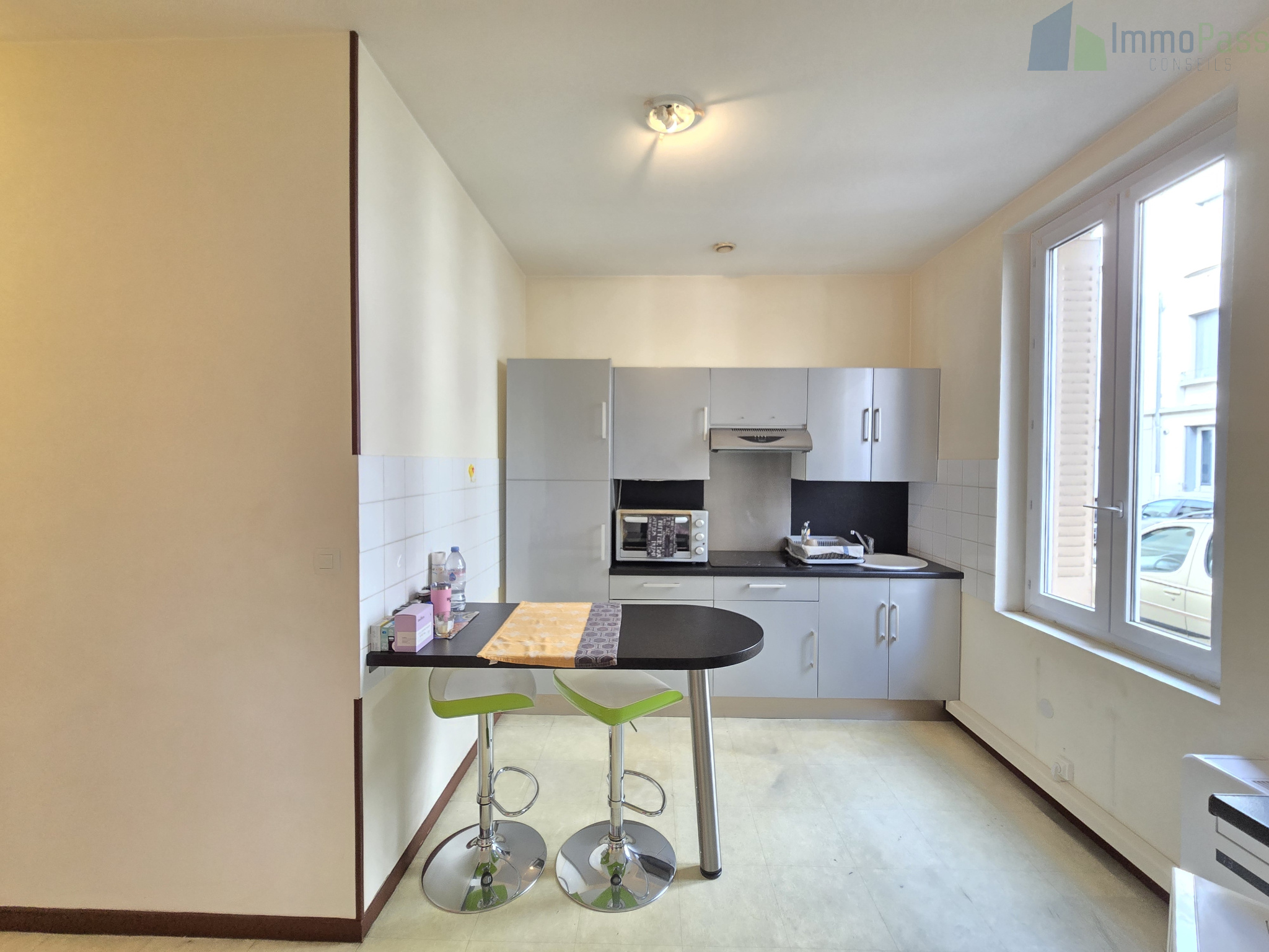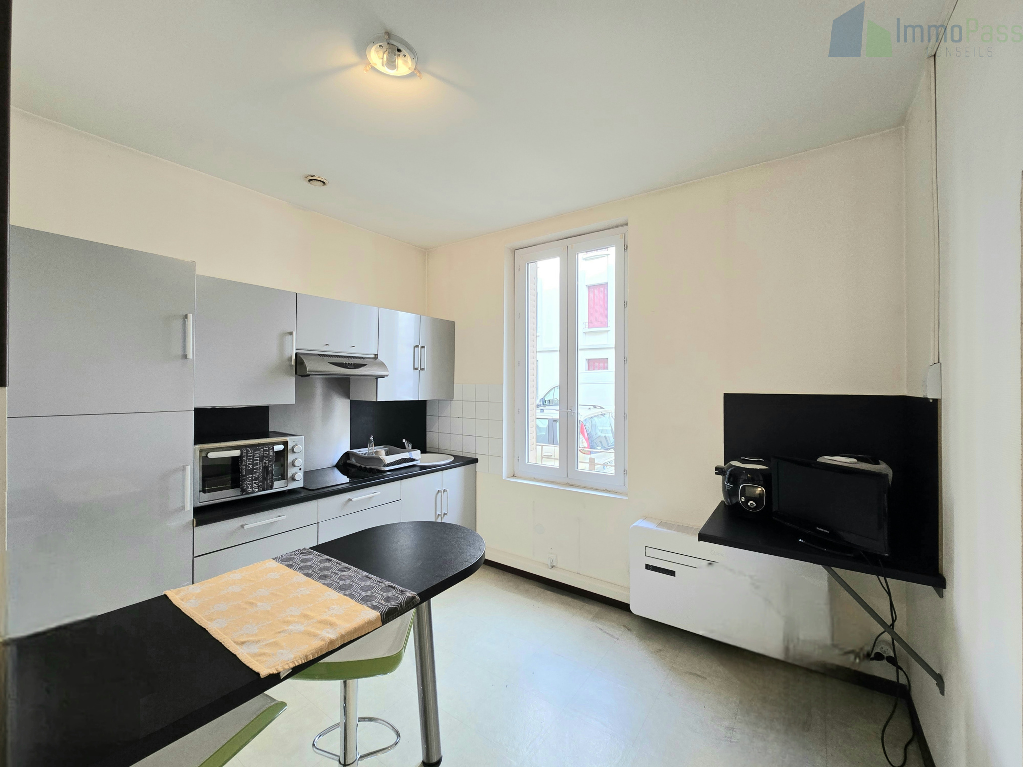 L’appartement se compose d’une entrée, d’un séjour lumineux avec grand espace cuisine, d’une chambre, d’une salle d’eau et de WC séparés. Il est actuellement loué depuis septembre 2015 au loyer de 560€ charges comprises par mois, offrant une rentabilité brute intéressante. Les charges de copropriété s’élèvent à 67€ par mois. Aucune procédure en cours.
